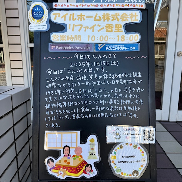 日付は「七五三」の日に昆布を食べて丈夫になってもらおうとの思いから。