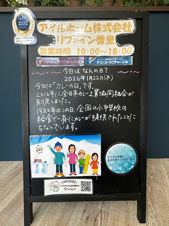 2026年01月22日 1月22日は「カレーの日」 今日は「カレーの日」です。 2016年に全日本カレー工業協同組合が制定しました。 1982年のこの日に。全国の小中学校の給食で 一斉にカレーが提供されたことにちなんでいます。