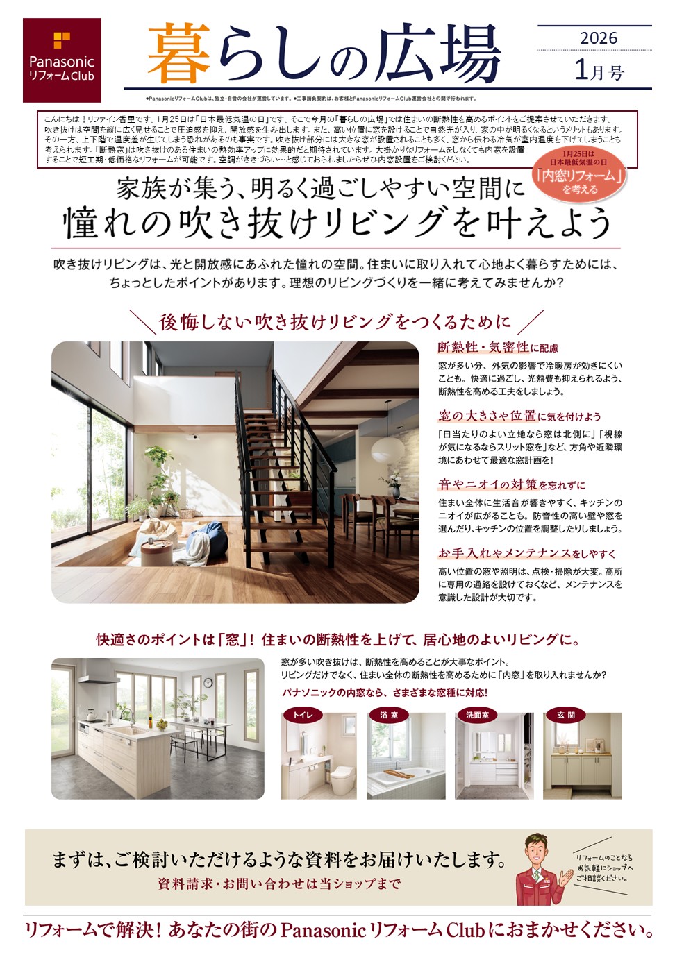 1月25日は「日本最低気温の日」です。そこで今月の「暮らしの広場」では住まいの断熱性を高めるポイントをご提案させていただきます。